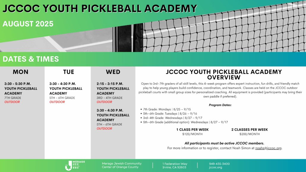 For more information or to register Contact Noah Simon at noahs@jccoc.org