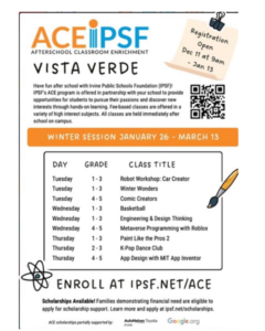 On Wednesday, December 10th, please join us for our parent-only open shop from 8:30-10am or you can also shop together with your child during the Vista Verde Open House from 6:00-7:30pm.